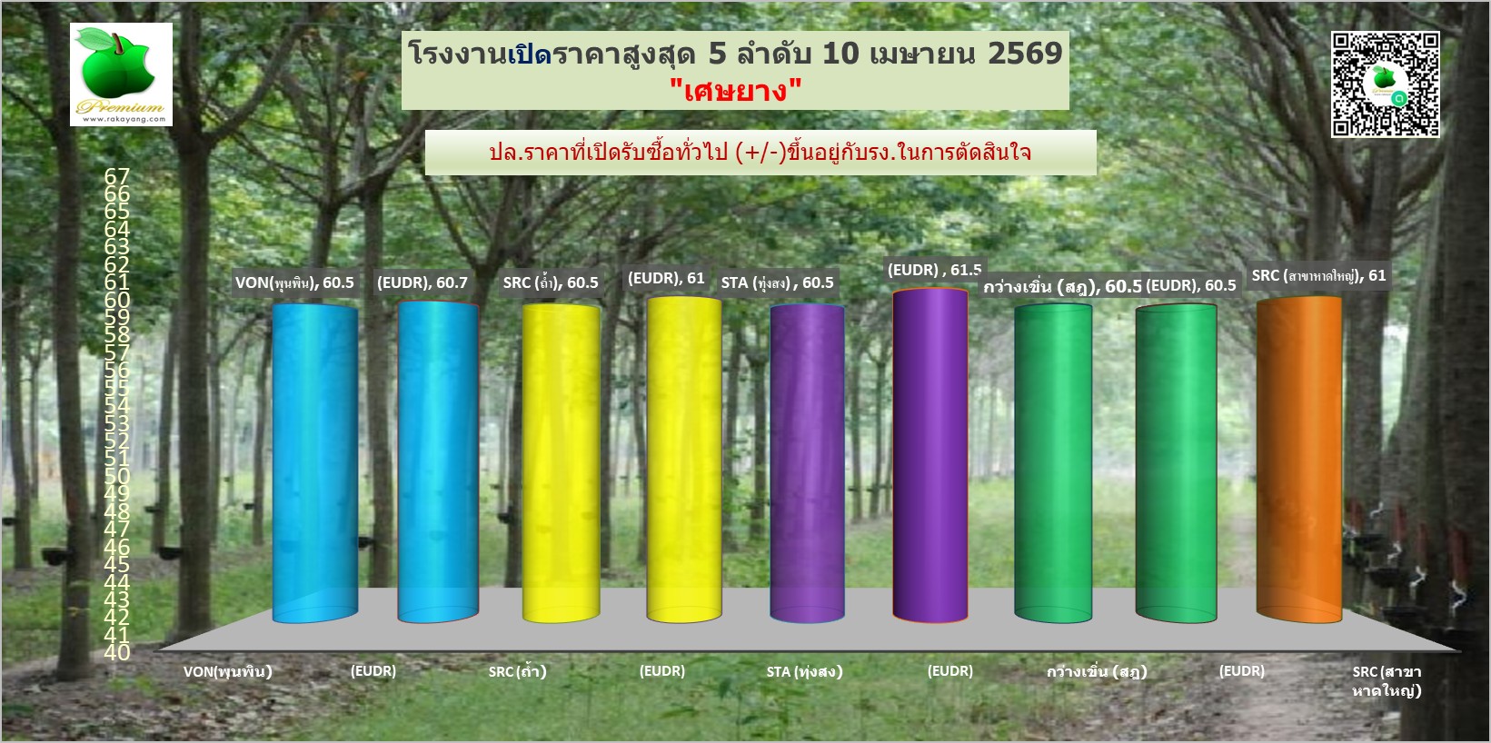 สรุปราคายางแผ่นรม/ดิบ เศษยาง เครฟ โรงงานทั่วไปประจำวัน ศุกร์ ที่ 10 เมษายน 2569