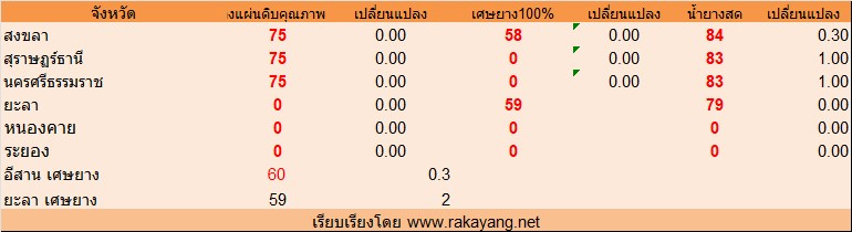 จังหวัด ระยองยางแผ่นดิบคุณภาพ 3 = 0บาท/กก. ราคาไม่เปลี่ยนแปลง