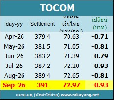 ราคาส่งมอบเดือน ก.ย.-2026 ซึ่งเป็นเดือนตัวแทนตลาด 413 สัญญา